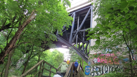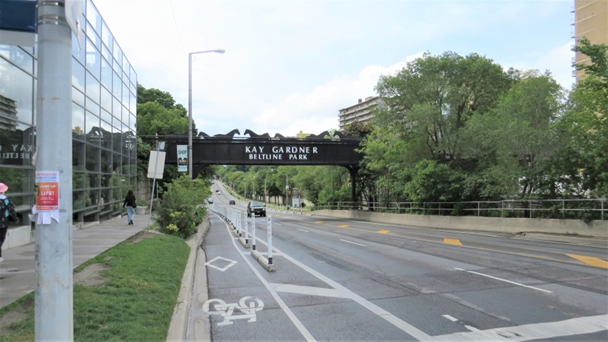 Because the trail is in a ravine, there are several bridges to pass under. The first is at St. Clair Avenue East.