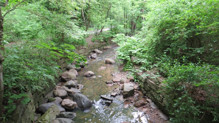 The trail continues through Rosedale, passing under the Glen Road bridge that links north and south Rosedale.