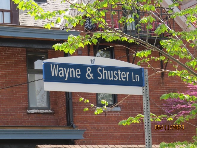 Near Bloor St., the road was under construction so we detoured east to Markham St., passing a newly-named laneway.