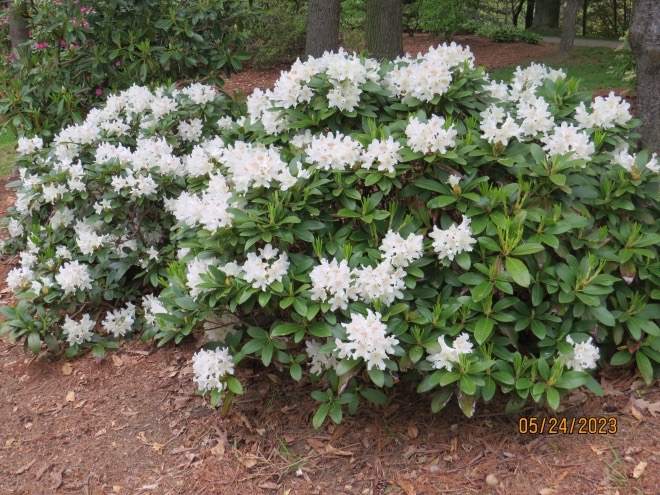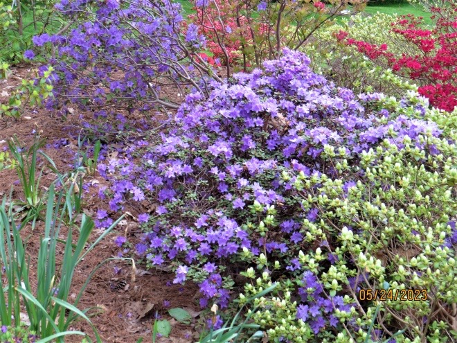 Once inside the gardens, we were enthralled by the variety and colour of the blooms. Rhododendrons bloom at different times, according to the variety, so we had missed some that were finished blooming and others that were still in bud. Nevertheless, we enjoyed a vibrant display of colour. Here are a few examples: