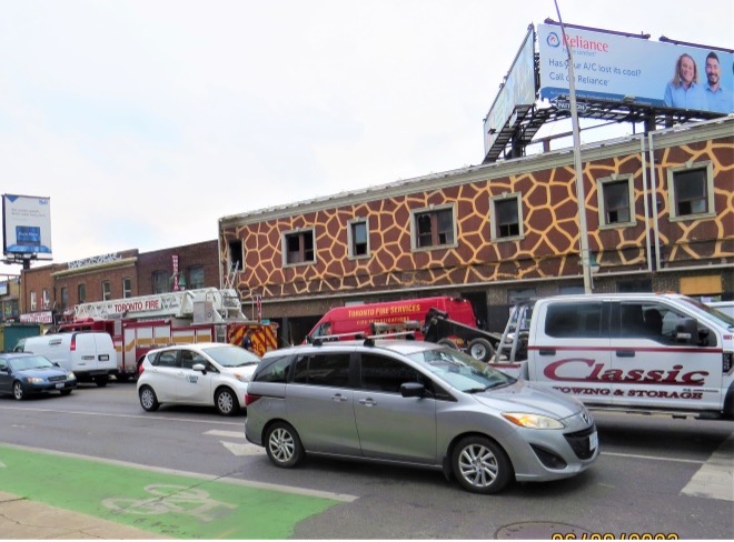 Even before we left Bloor St., we ran into several fire trucks attacking a blaze in an abandoned restaurant at Dundas and Bloor Streets.