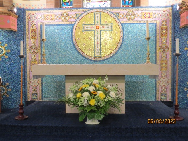 The church also has a reredos made of Venetian glass behind the main altar.