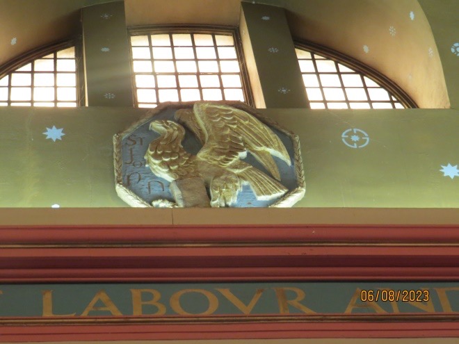 Here is one of the medallions representing the Evangelists (St. John) which are found around the centre of the dome.