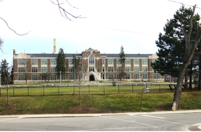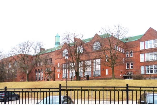 Continuing along past Western Technical-Commercial School, in two blocks, at Quebec Ave., we come to another respected institution, Humberside Collegiate Institute. It was originally known as West Toronto High School but the name changed with amalgamation. I guess it was an easy choice as the main entrance of the original building faces Humberside Ave.