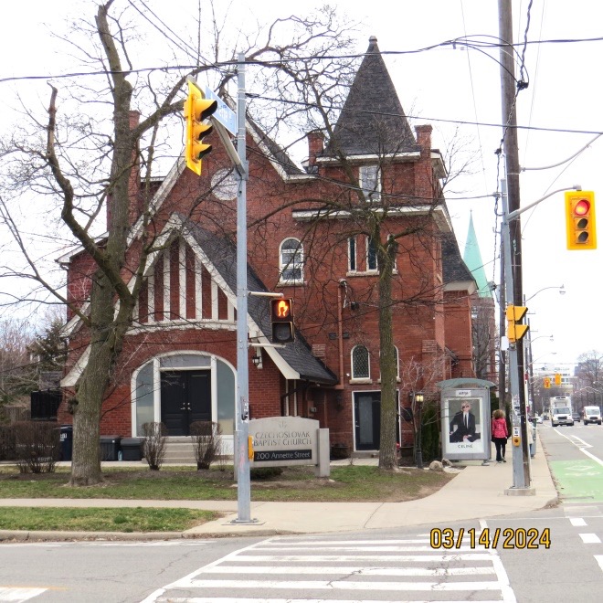 After Humberside C.I., Quebec Ave. led us to Annette Street where there are many fine buildings to be found. Some of them are churches, although several of them have been or are being converted to condominiums.