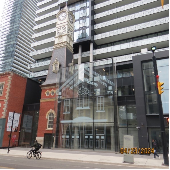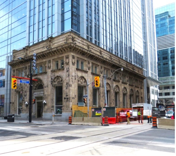 The impressive bank buildings that stand across from the Albert Street part of the Eaton Centre have finally been given a new life, one as part of the Massey Hall expansion and the other as the entrance to a condominium building.