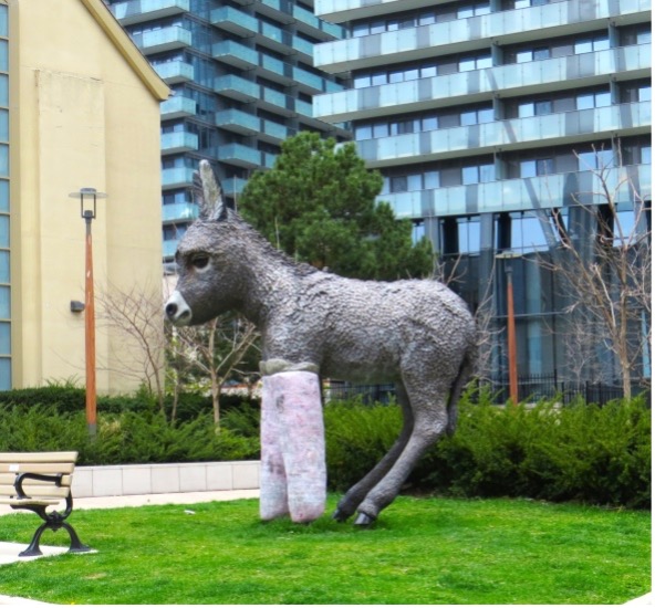 When you emerge from the Bloor-Danforth subway at Yonge St., the walker is greeted by huge condo developments. On the east side of Yonge is 1 Bloor East with its modern artwork to admire.