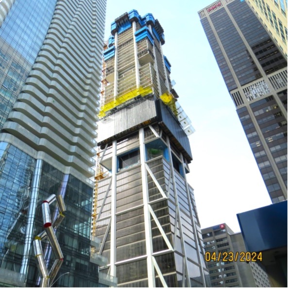 Across Yonge is The One, a financially troubled project (now building again) that is intended to be even higher than its neighbour, about 85 storeys.
