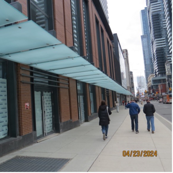 Walking south on Yonge, notice that the city is wisely permitting canopies over the sidewalks to protect citizens from the weather.