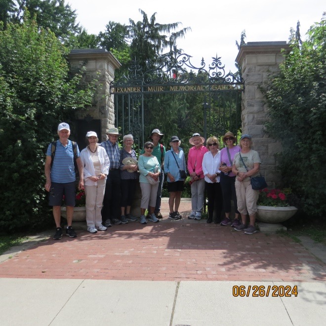 In June, the Walking Club took the subway to the Lawrence Station on Line 1. From Lawrence Ave., we walked south a couple of blocks to the Alexander Muir Memorial Gardens on the east side of Yonge Street.