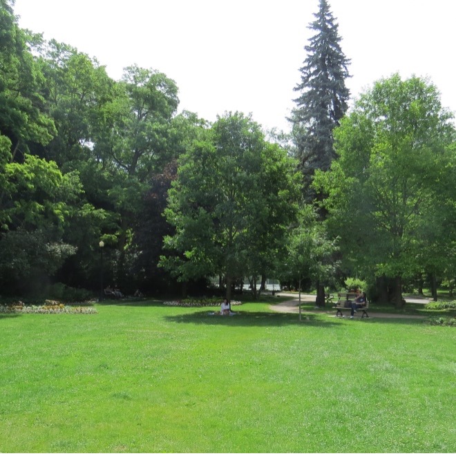 This park, financed by donations from an appreciative public, is a memorial to Alexander Muir, the composer of the Canadian patriotic song, The Maple Leaf Forever. The park has well-tended flower beds as well as carefully trimmed grass areas.