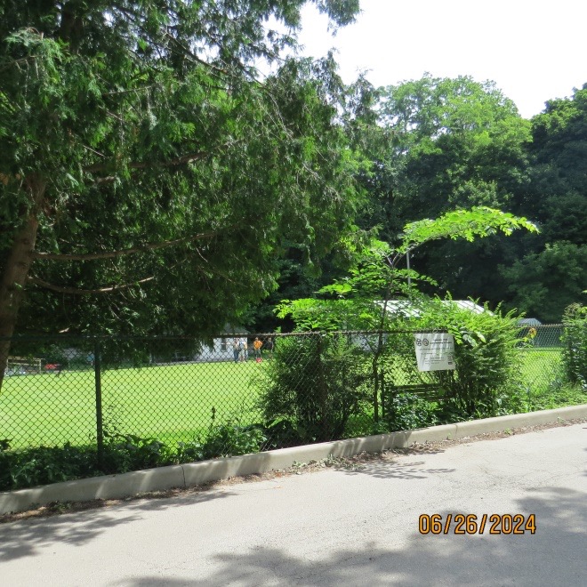 Following the stream that runs through the park, Burke Brooke, we came to Lawrence Park where there are tennis courts and lawn bowling.
