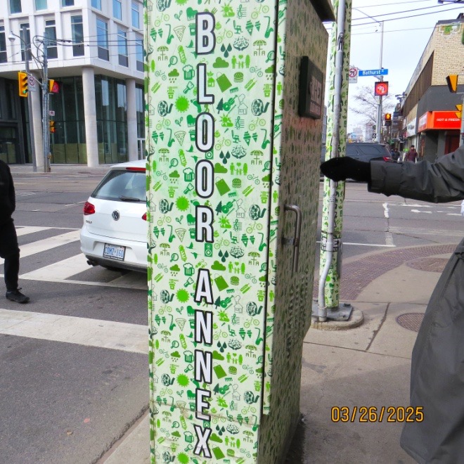 We took the subway to Bathurst subway station and walked east along Bloor St. where the traffic signal control box greeted us.