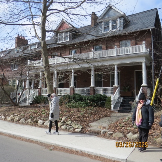 The Probus Walking Club held its first outing on March 26th. We walked through the area of Toronto known as The Annex, an area of the city stretching from Avenue Road to Bathurst Street, and from Bloor Street to the CP railway line just above Dupont Street. The area was a prosperous neighbourhood that was annexed by the City of Toronto in the late 19th century and contains outstanding examples of several architectural styles popular at that time.