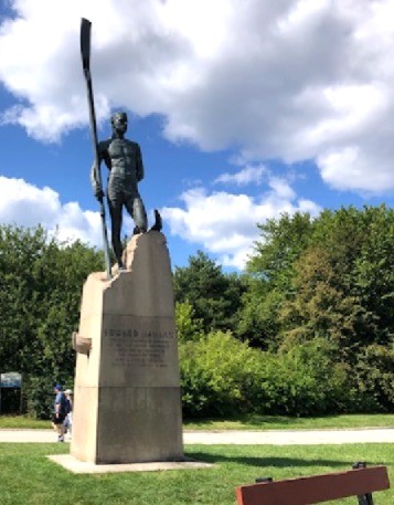 Upon leaving the ferry, the traveller passes by the retired tug boat “Ned Hanlan” and a statue of its namesake. Ned Hanlan grew up on the islands and was a world-champion rower so is honoured with this statue.