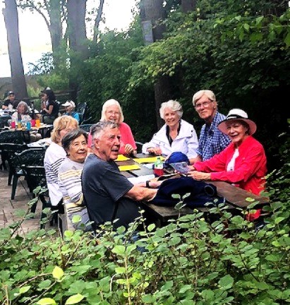 Here is the happy group enjoying their well-deserved lunch. (We figured that we had walked over 8km and taken over 12,000 steps.)
