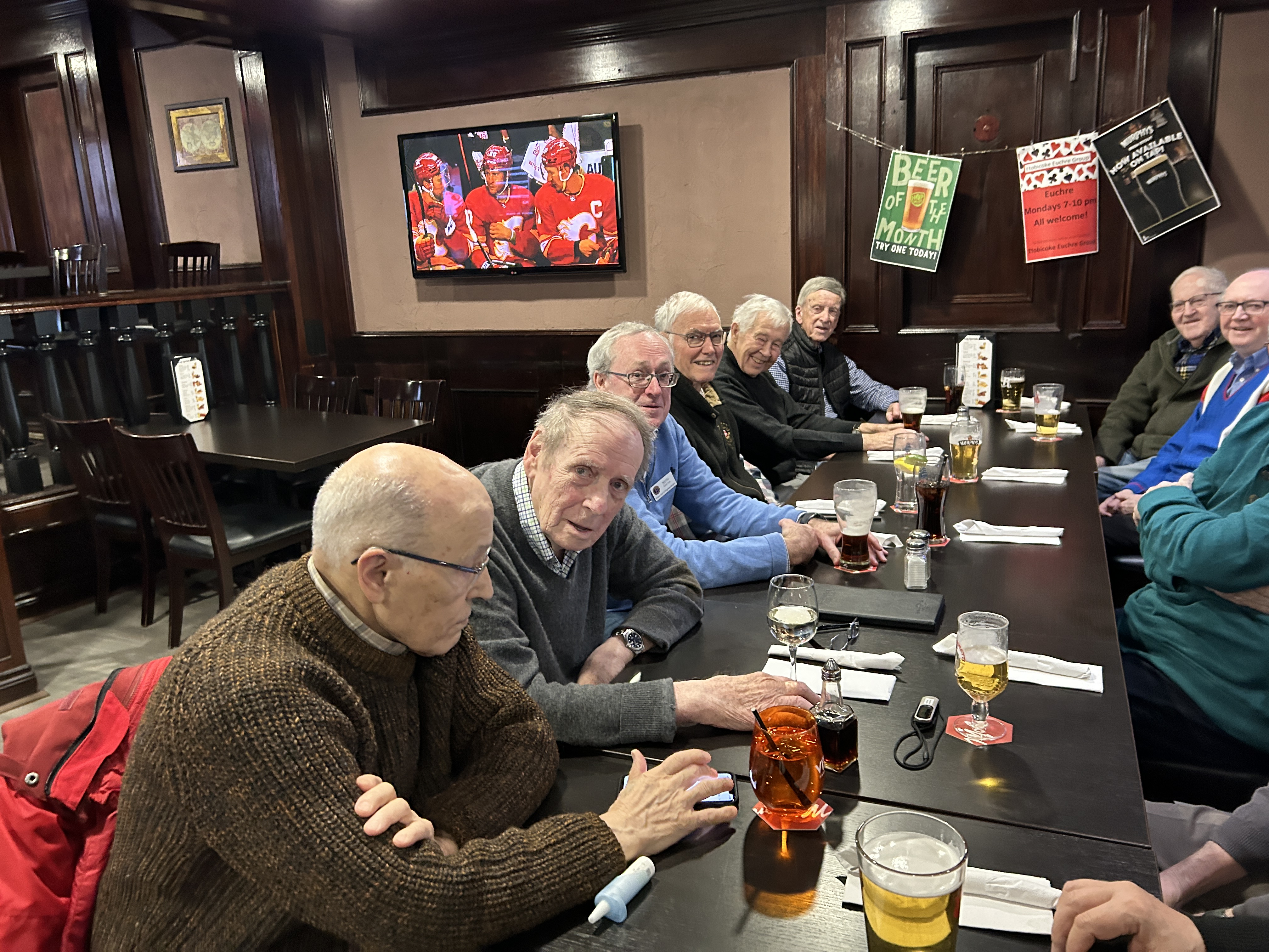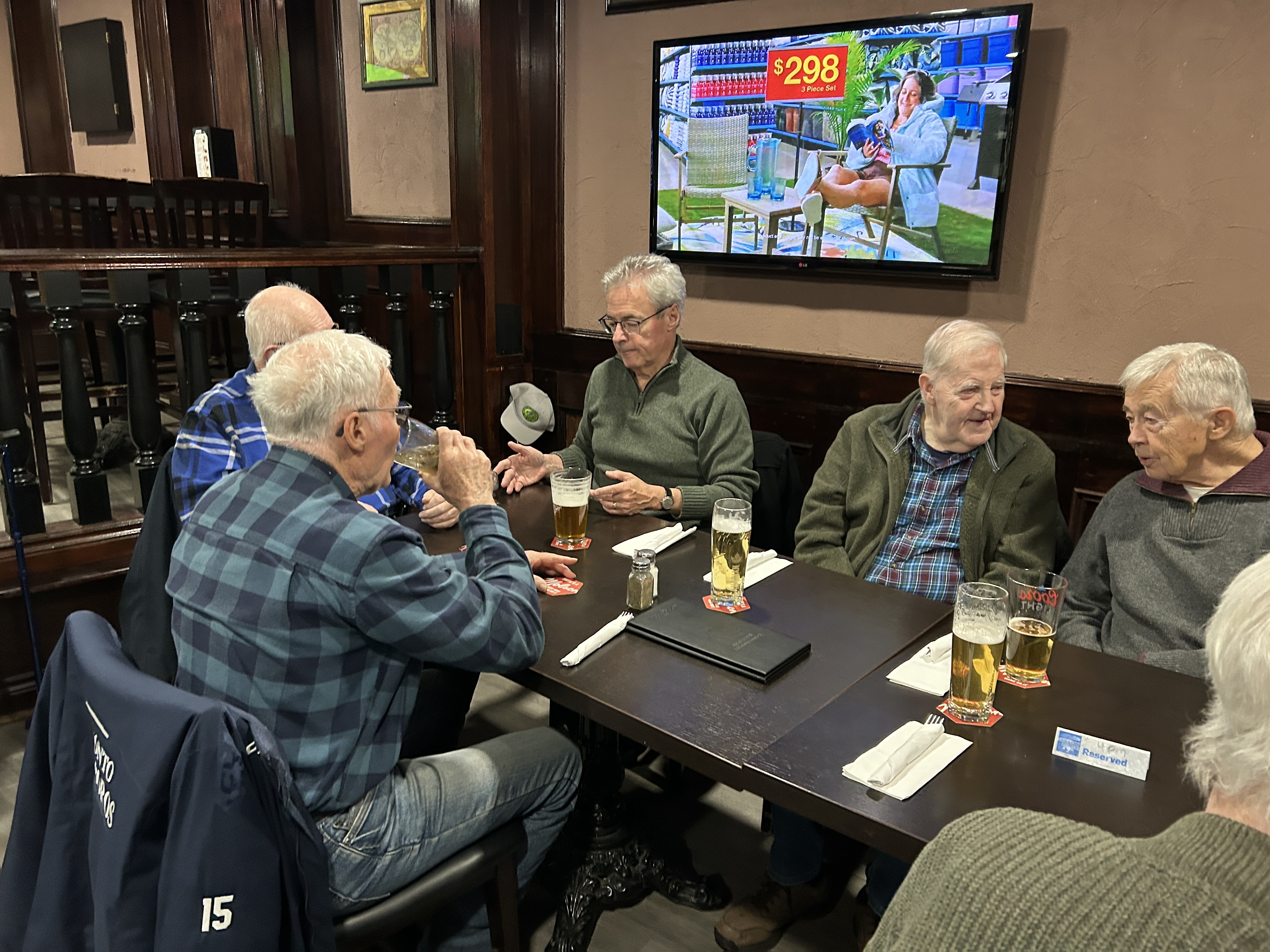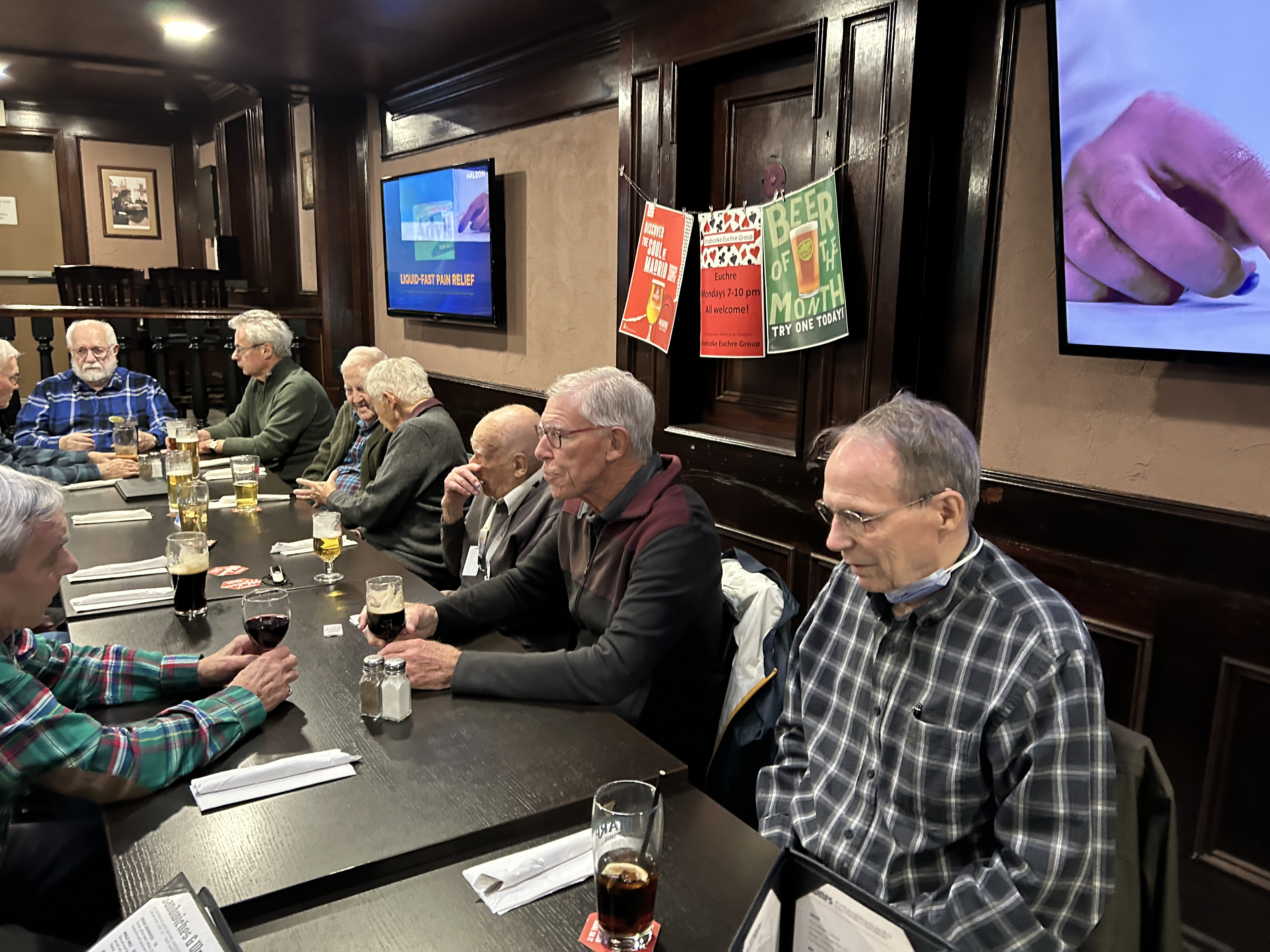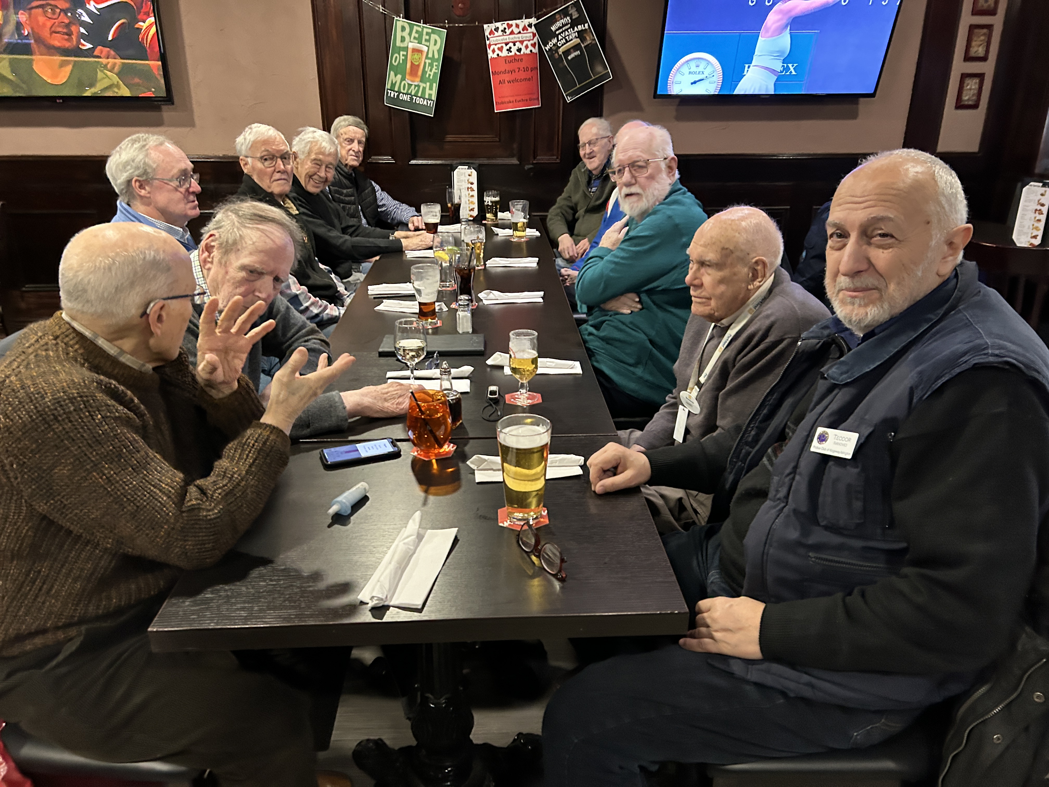 Seven Pubbers met in person on Wednesday February 19th at noon. The meeting discussed current events such as the upcoming Provincial elections and President Trump’s tariff policies.