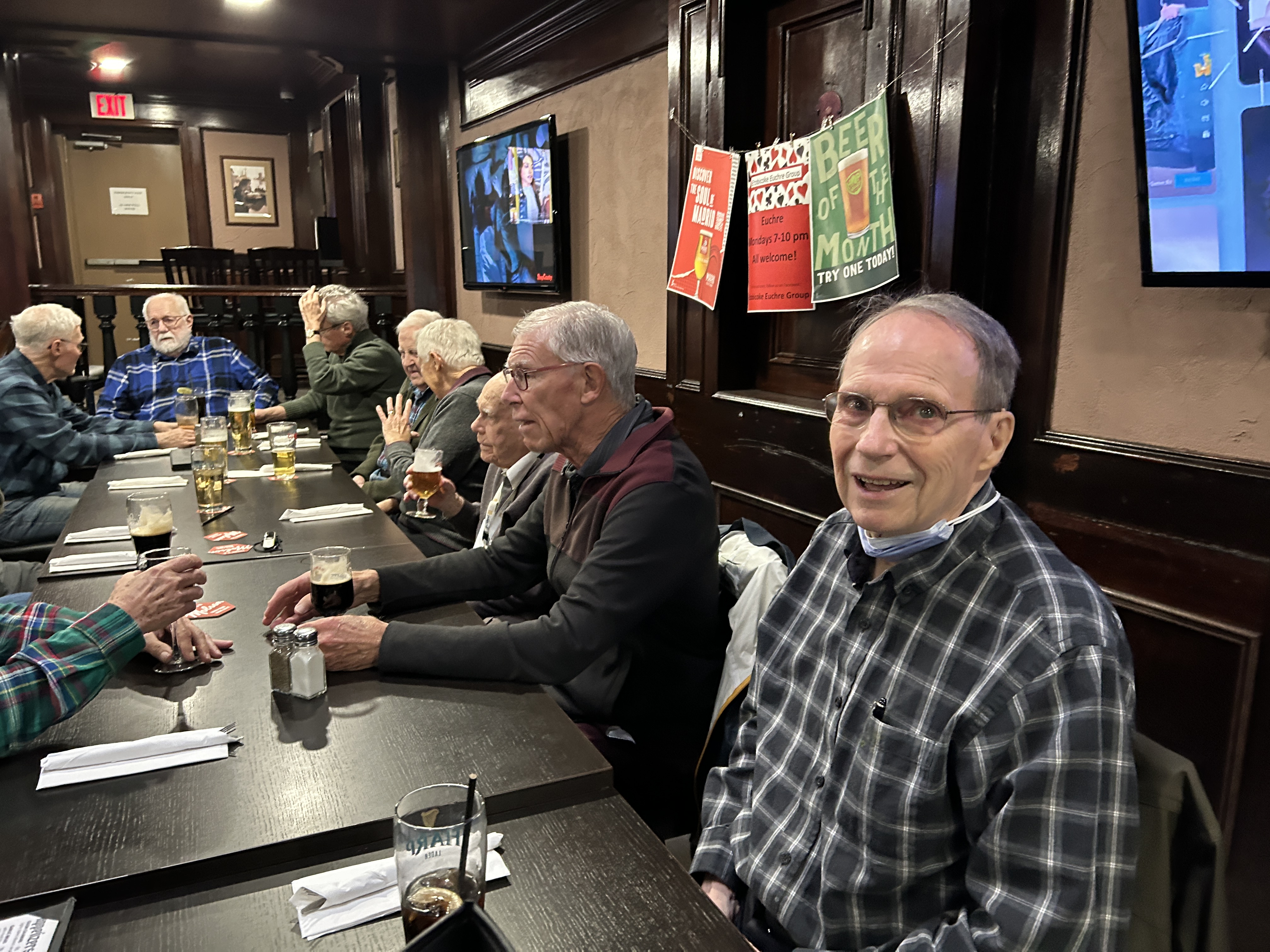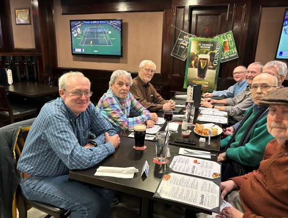 Now that we are meeting in person again, members can order a meal, very often the daily special, and enjoy a beer or other libation. The Pub Club often addresses the burning issues of the day in an unstructured discussion, but fortunately no one is listening.